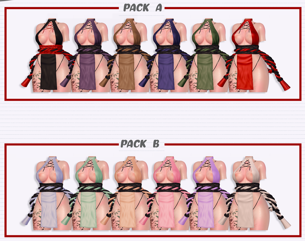 - 12 bodysuit textures + 11 ropes textures + normal maps.